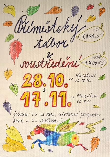 Jedno a více denní tábory a soustředění: 1.5.,8.5.,28.10.,17.11.